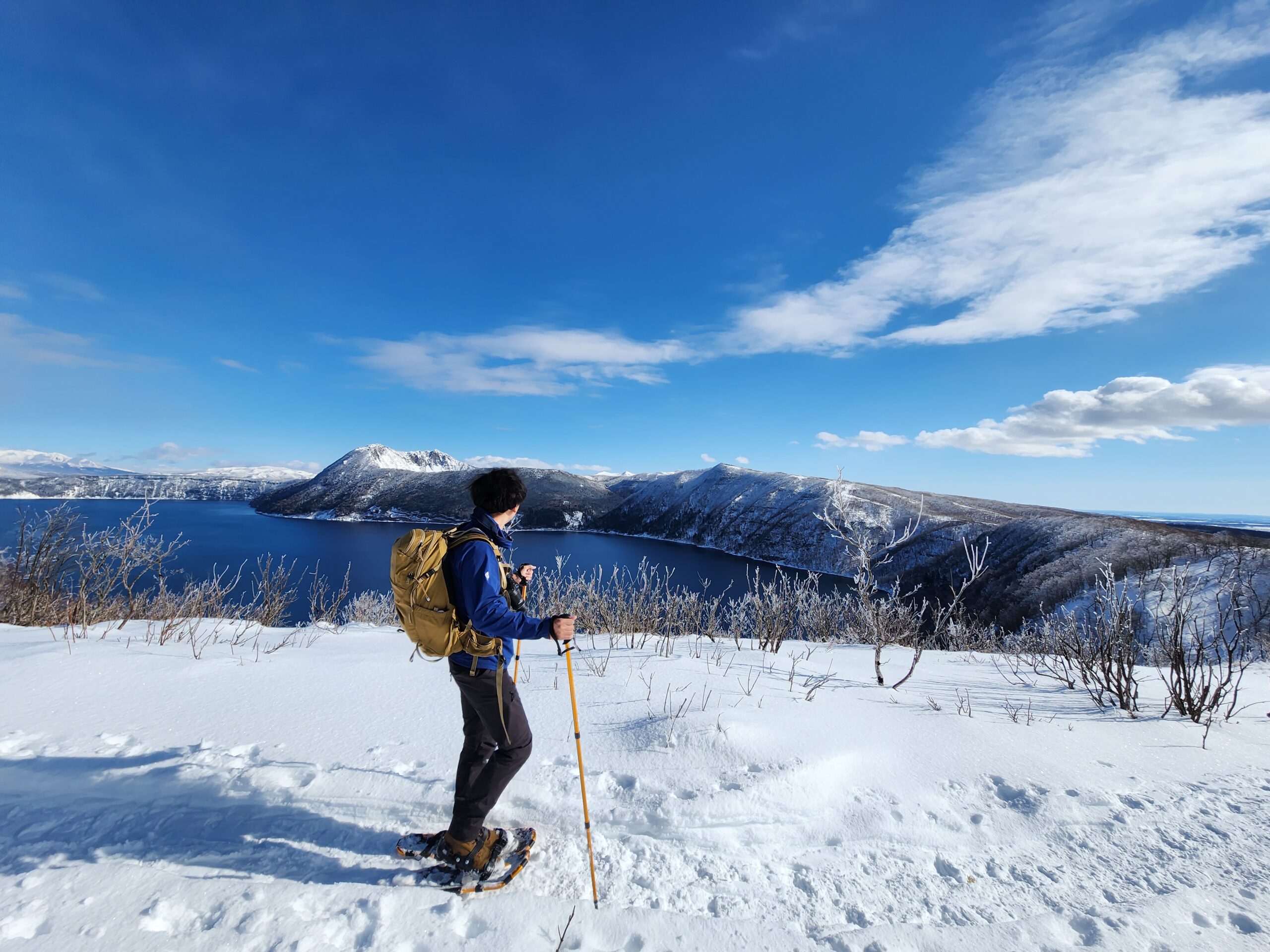 Stepping onto the crater rim from Lake Mashu Observatory No. 1, you will find a pristine snow trail overlooking the lake, famous for having some of the clearest waters in the world. The route alternates between snow-covered forests and open, windswept terrain. Under the right conditions, you may encounter magical winter phenomena such as rime ice and diamond dust.