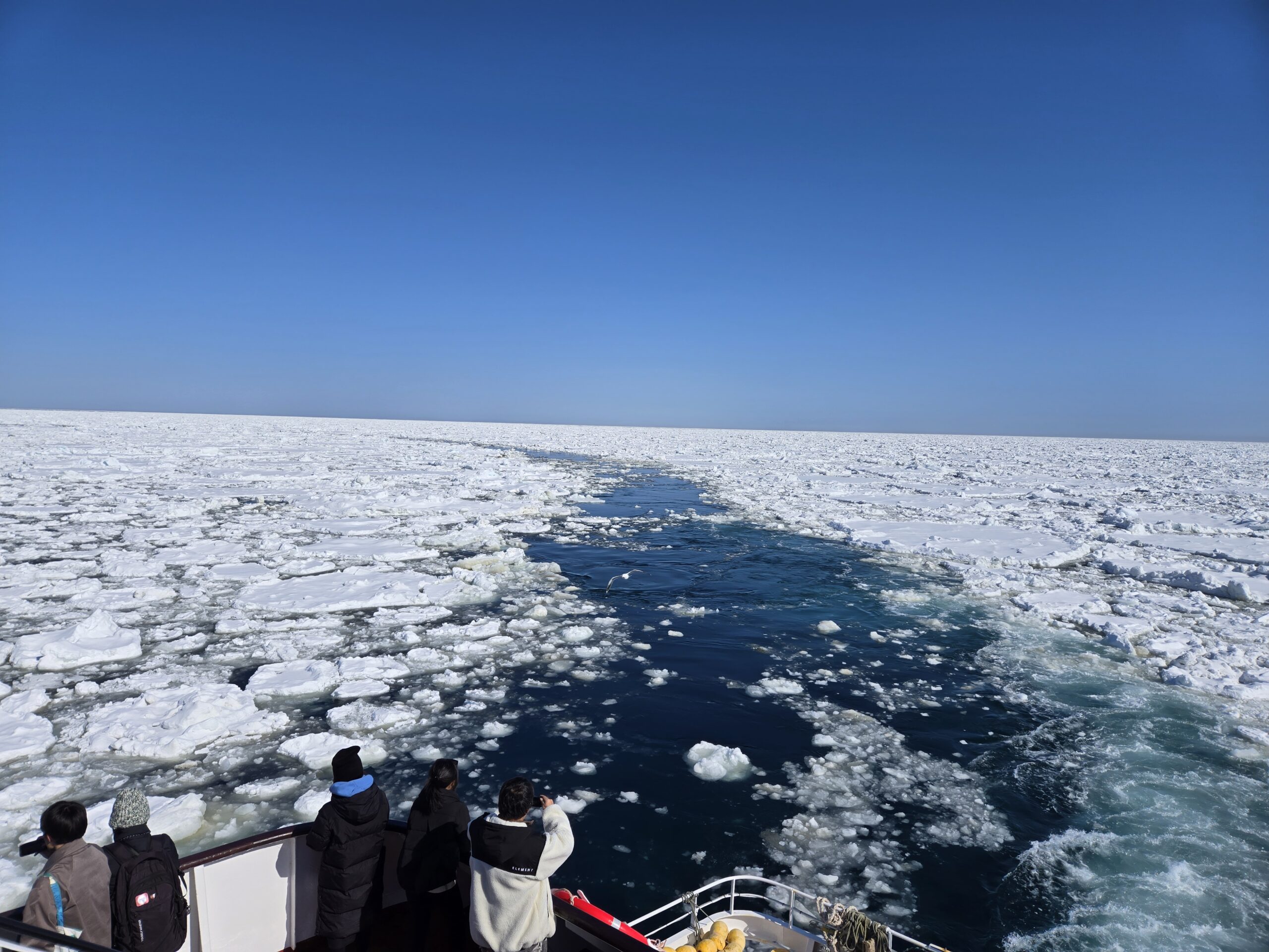 This special winter experience takes place when Notsuke Bay is completely frozen. Visitors walk out onto the ice to witness the “Ice Horizon,” a vast, seamless panorama where the frozen surface appears to merge with the sky.